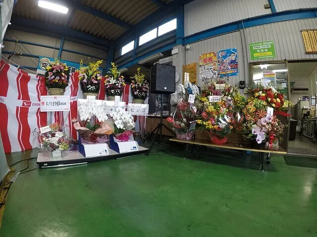 お客様や各関係各社の皆さんからは、お祝いの花もいただきました。大変大勢のお客様にご来店いただき、大盛況で行うことができました。誠にありがとうございました。
