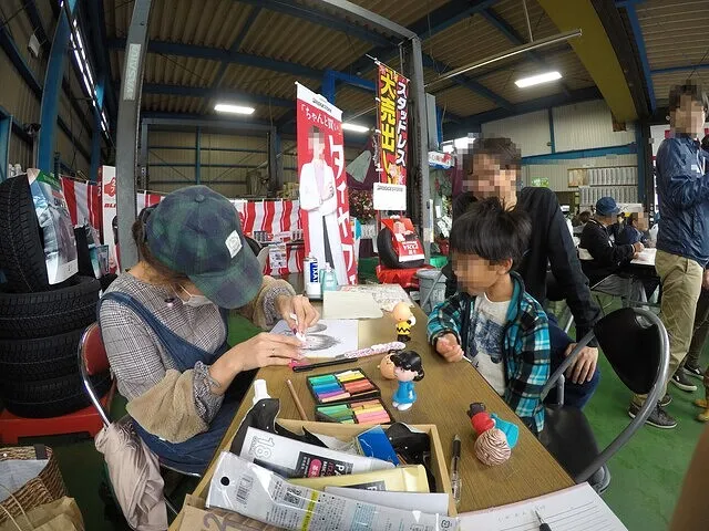似顔絵は、順番待ちができるほどの盛況ぶりで忙しそうでした。