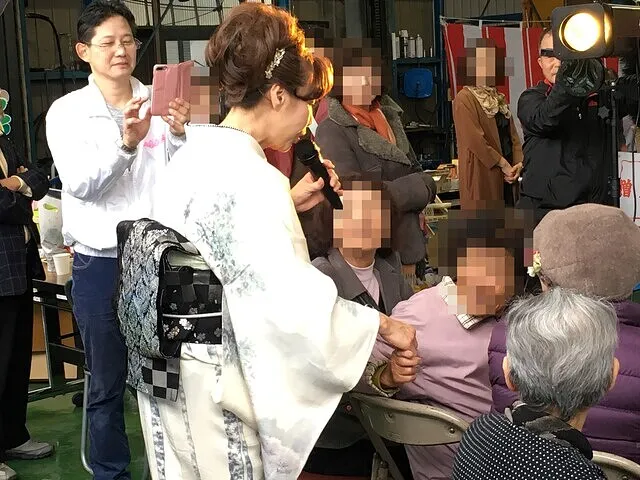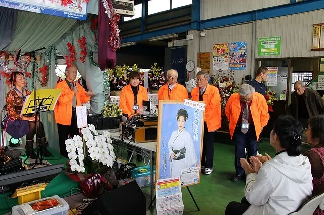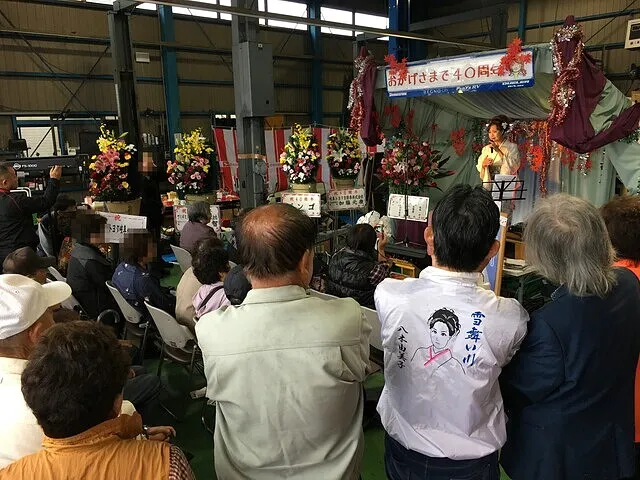 イベント最大の催し物は、演歌歌手の八木由美子さんに来ていただいて歌を歌っていただきました。デビューシングルで、雪の降る岐阜県揖斐川(いびがわ)を舞台に、女心のせつなさを歌った曲「雪舞い川」を披露していただきました。