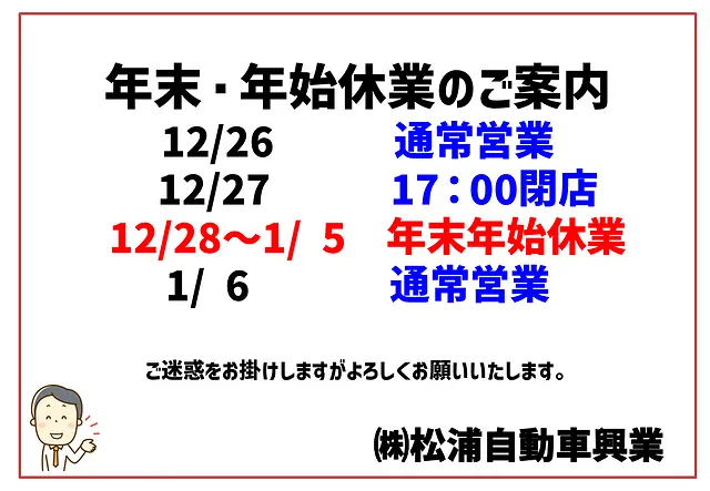 ■休業期間:2025年12月28日(日) ~ 2026年1月5日(月)