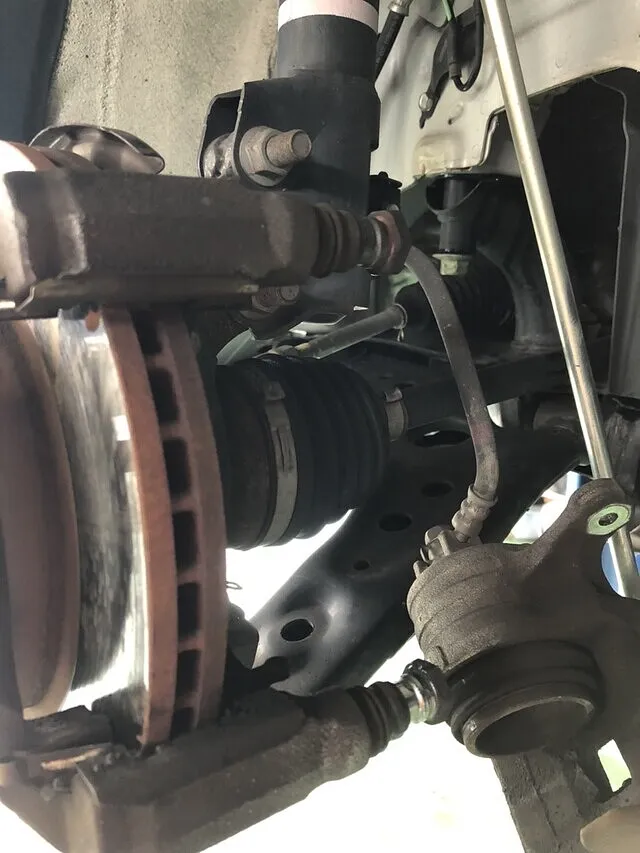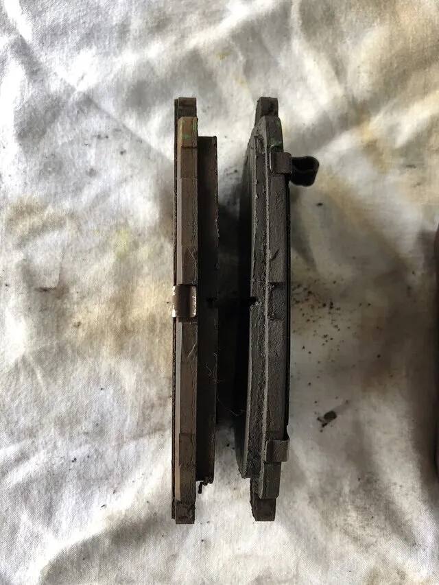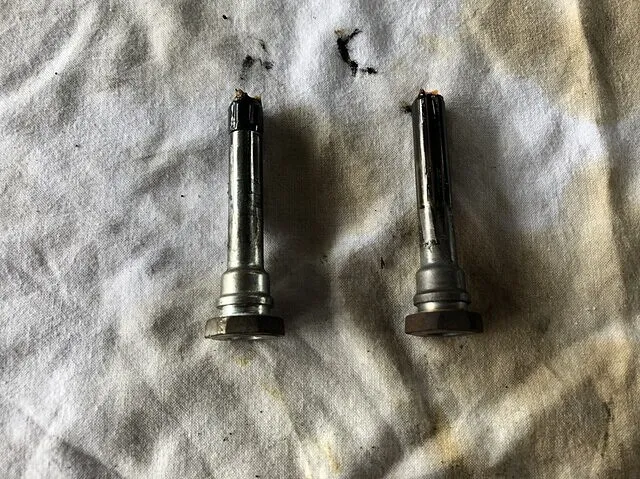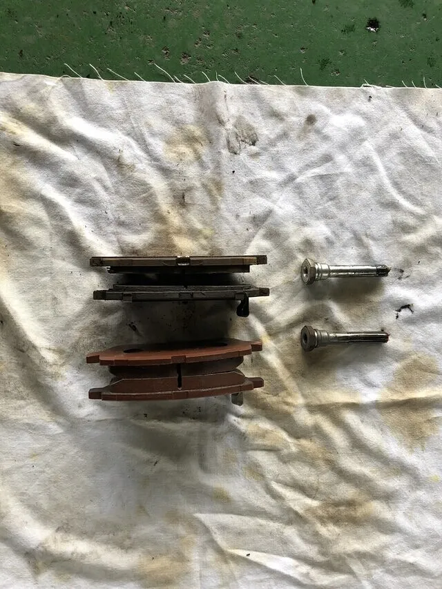 片側のみ減る場合の多くは、スライドピンの動きが悪くなっていることが多いので、ピンの動きを確認したところかなり負担がかかっている状況でしたのでバラして清掃していきます。