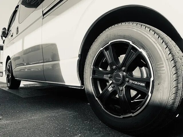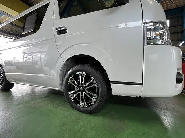 本巣市在住でハイエースにお乗りのお客様のご依頼で、GARCIAさんのSS REVOLVER(17インチにサイズアップ)を装着。同時に17インチのブリヂストンタイヤGL-Rを組付けました。重量のある車でも安心してお乗りいただけます。